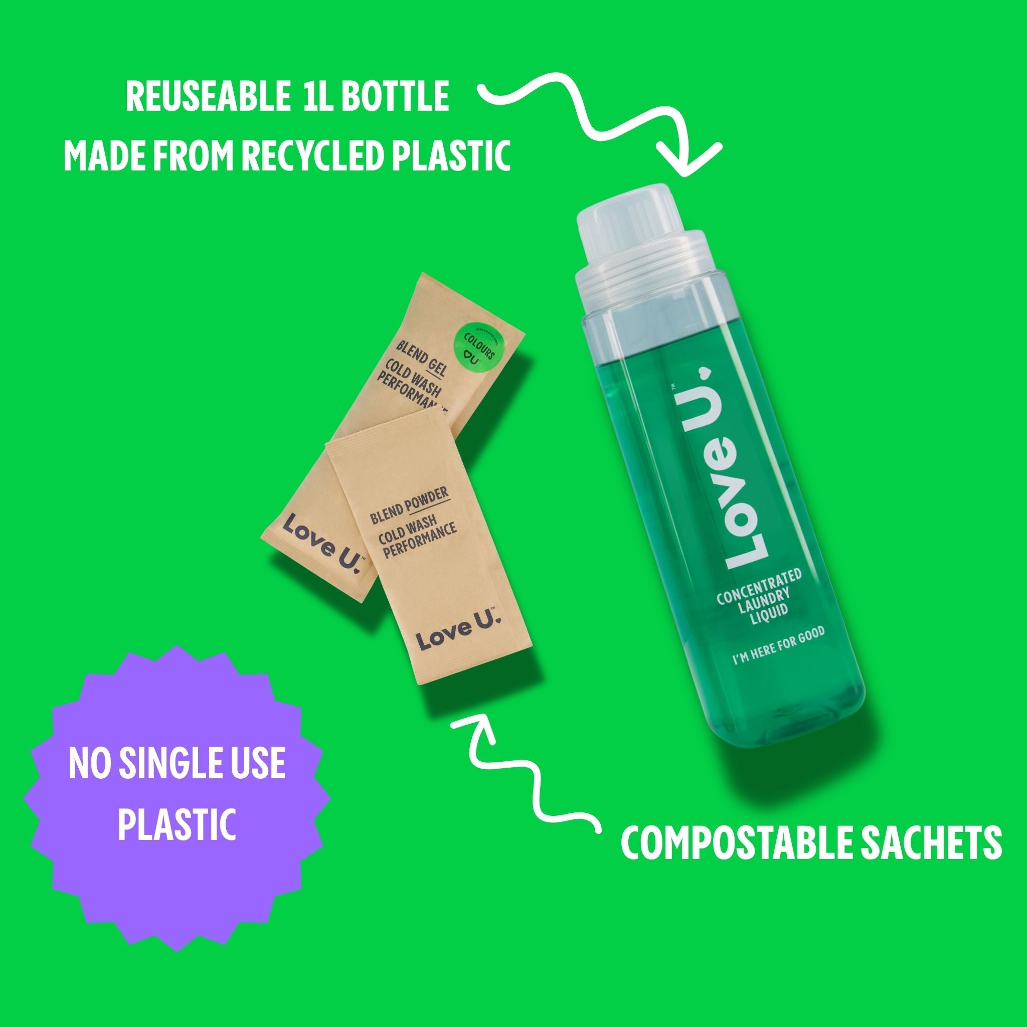 Our super concentrated sachets are shipped directly to your doorstep. Once blended, it's as simple as using any other laundry liquid.