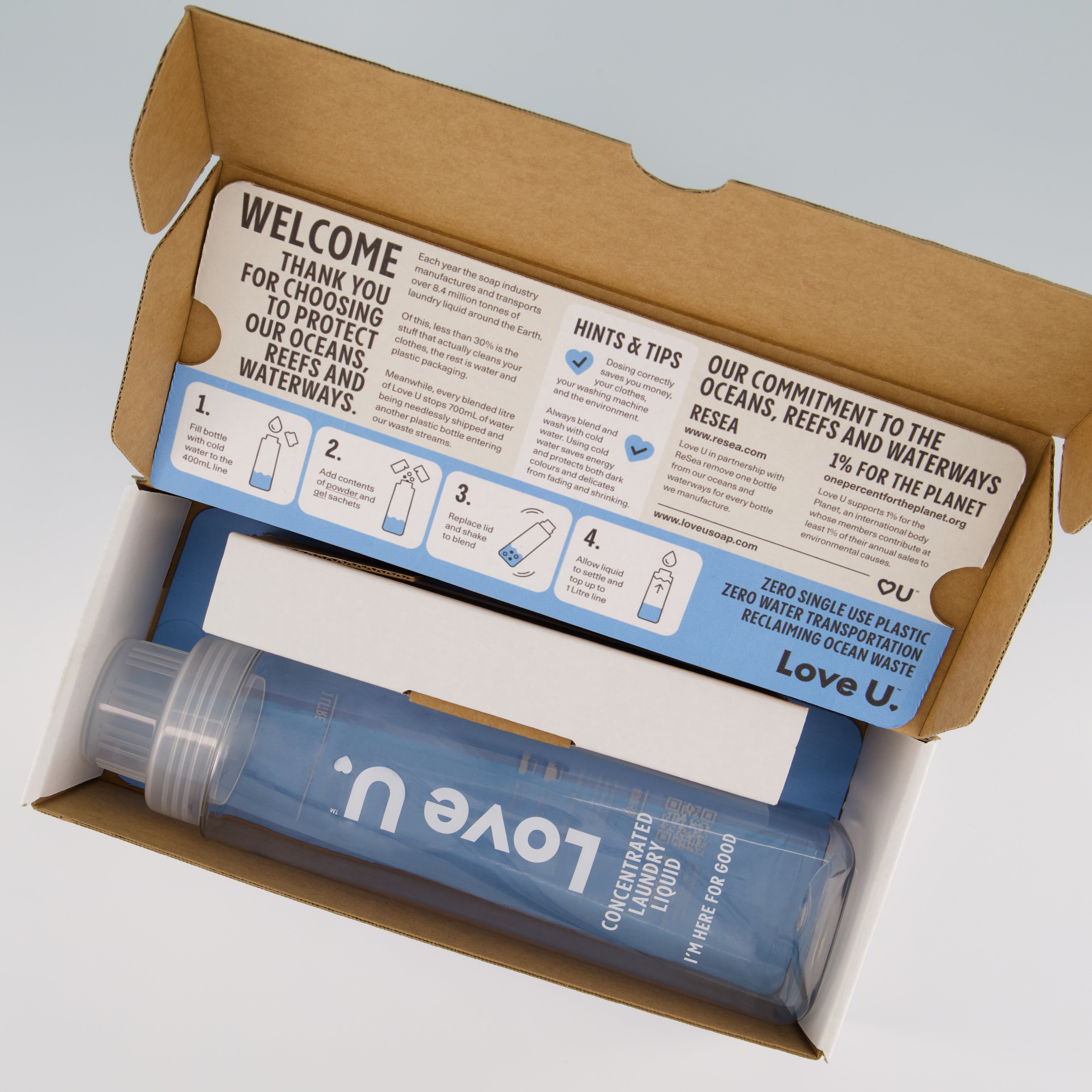 Includes 1 litres of laundry liquid plus a free Hereforgood Reusable Bottle